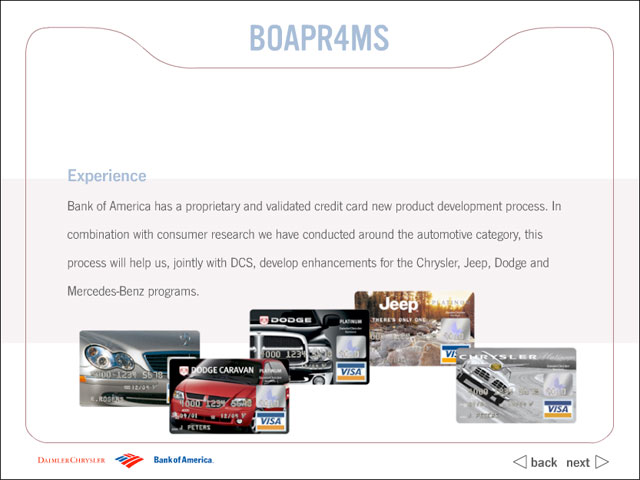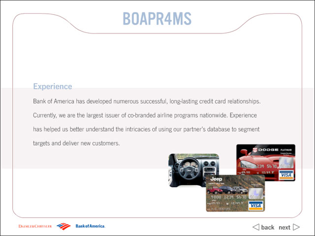 Bank of America CD to clients to better explain their services and credit card products.